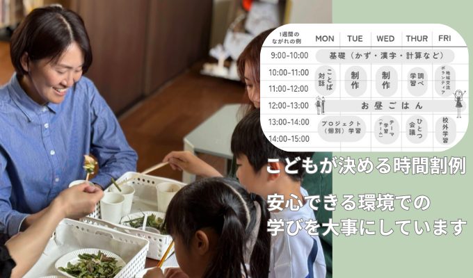 「ひとつ」では、子どもたちの個性やペースを尊重しながら、自然体験や興味に基づく学びを通して、自己肯定感や人と人とのつながりを育む教育を行っています。